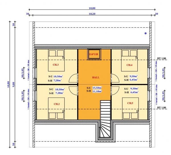 Ce modèle est évolutif en fonction des aménagements que vous choisirez. Nombre de chambres, création d’un espace dressing, extension de la surface initiale, sous-sol ou plain-pied...Vous pouvez personnaliser ce modèle tout en préservant son âme.